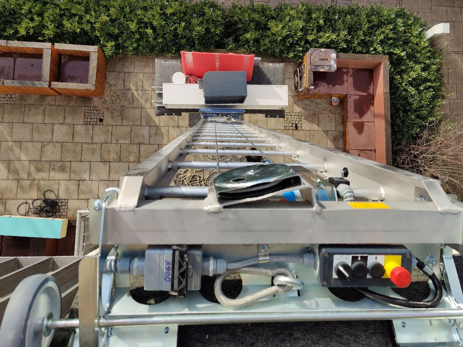 Das aus einzelnen Leiterelementen bestehende Grundgerüst unseres Außenaufzugs kann leicht an den Einsatzort gebracht und vor Ort rasch zusammengesetzt werden.